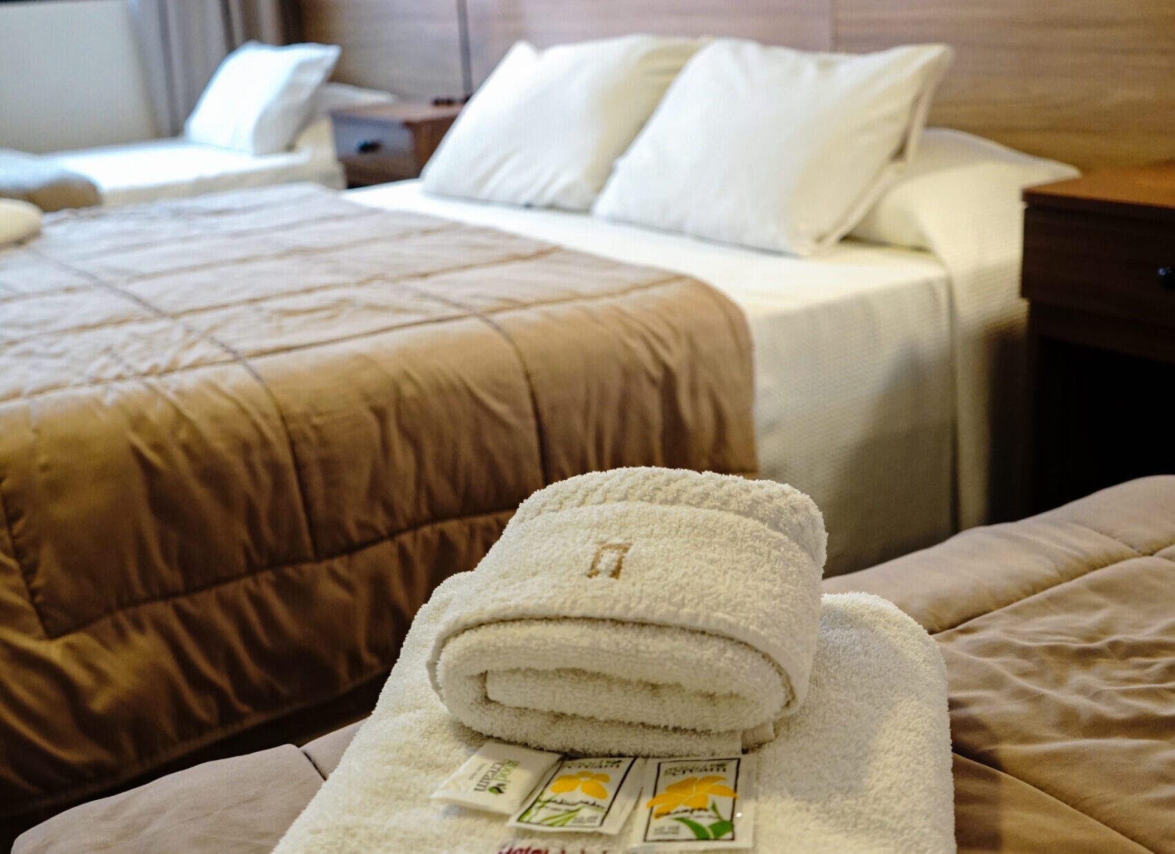 Esta habitación Triple, es amplia, cuenta con aire acondicionado frio/calor, TV de pantalla plana smart tv por cable y baño privado. El alojamiento posee 1 cama sommier para 2 personas mas una cama sommier para 1 persona. Wi-Fi. Mesa de luz con lampara de noche. Baño privado. con ameneties, Ropa de Cama. Heladera frigobar, Caja de Seguridad.