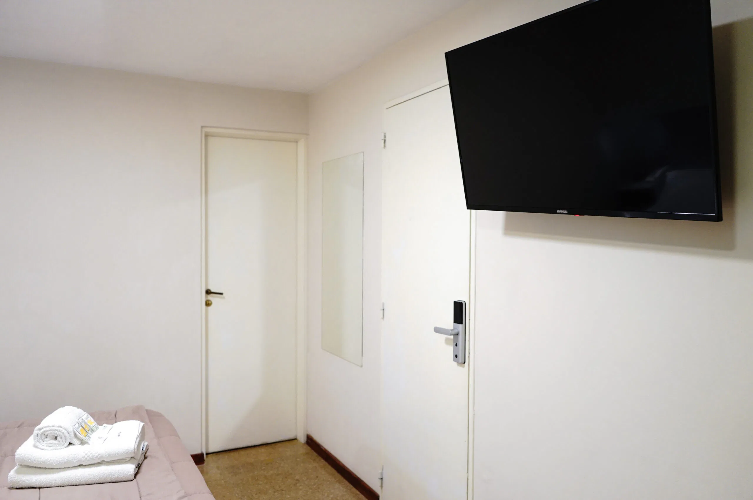 Esta habitación doble, amplia, cuenta con aire acondicionado frio/calor, TV de pantalla plana smart tv por cable y baño privado. El alojamiento posee 1 cama sommier para 2 personas. Wi-Fi. Mesa de luz con lampara de noche. Baño privado. con ameneties, Ropa de Cama.